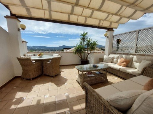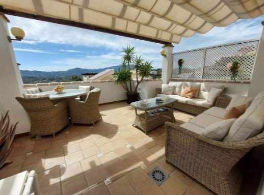 Descubre este espectacular ático dúplex de 3 dormitorios, situado en la exclusiva urbanización de Puebla Aida, Mijas Golf. Con un estilo andaluz que enamora, esta propiedad ha sido impecablemente mantenida y ofrece un ambiente acogedor. Disfruta de 4 piscinas comunitarias y encantadores rincones en la urbanización, perfectos para relajarte en un entorno tranquilo con vistas al oeste hacia las montañas.