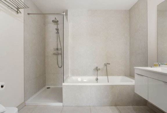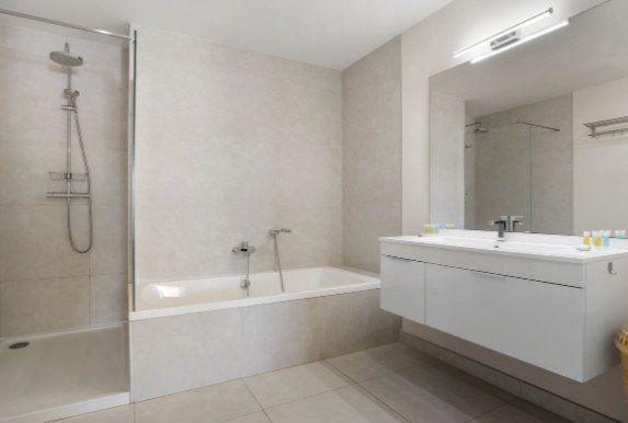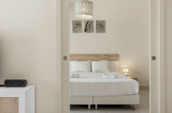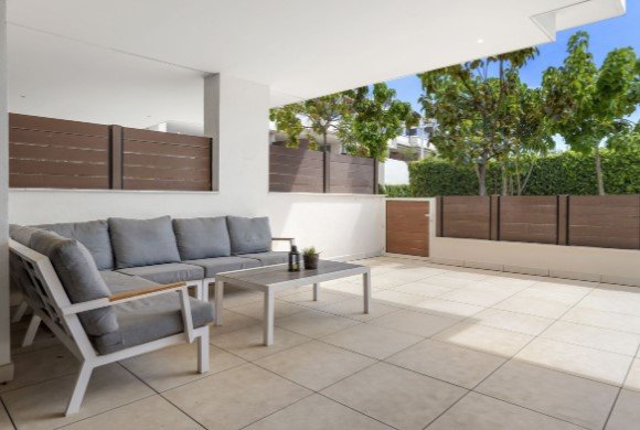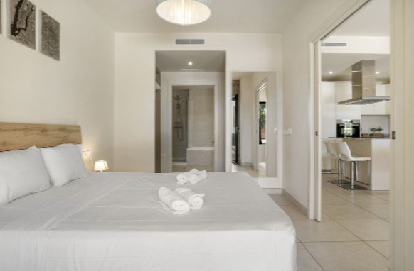La sala de estar es un lugar acogedor y luminoso, con una moderna cocina abierta totalmente equipada. Desde aquí, accedes a una espectacular terraza de más de 40 m², ideal para disfrutar de comidas al aire libre con amigos o relajarte bajo el sol en las tumbonas. La terraza también se puede acceder desde el dormitorio principal, brindando un toque especial a tu rutina diaria.