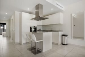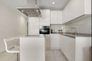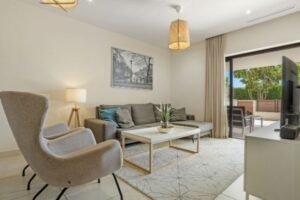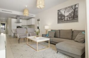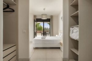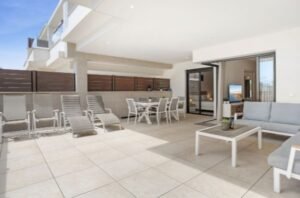 La sala de estar es un lugar acogedor y luminoso, con una moderna cocina abierta totalmente equipada. Desde aquí, accedes a una espectacular terraza de más de 40 m², ideal para disfrutar de comidas al aire libre con amigos o relajarte bajo el sol en las tumbonas. La terraza también se puede acceder desde el dormitorio principal, brindando un toque especial a tu rutina diaria.