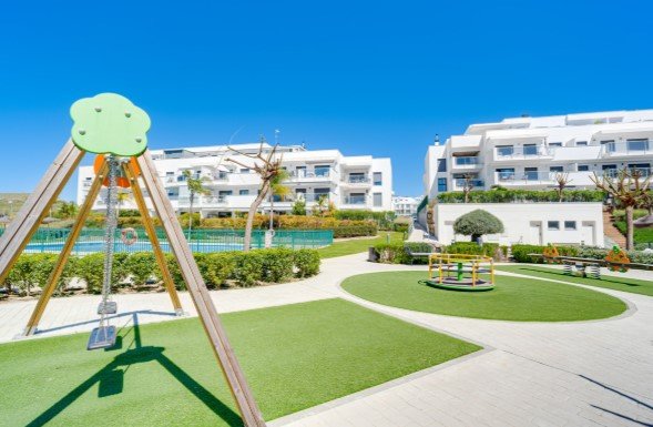 El jardín privado ofrece acceso directo a las zonas comunes, donde podrás disfrutar de una gran piscina y una zona de juegos infantil, perfectas para familias.