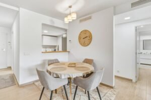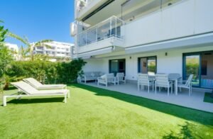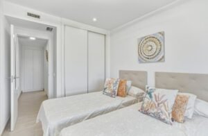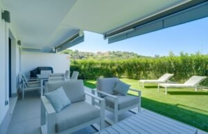 Con una superficie construida de 122 m² y un diseño que maximiza la luz natural, este hogar ofrece una sensación de amplitud que te encantará. Ambos dormitorios cuentan con acceso directo a una encantadora terraza y un jardín privado, perfectos para disfrutar del clima mediterráneo.El dormitorio principal incluye un baño privado, mientras que el segundo dormitorio tiene acceso a un baño familiar separado, ideal para huéspedes. La cocina, completamente equipada y con un práctico bar de desayunos, se integra perfectamente con el salón y comedor de planta abierta, creando un espacio ideal para compartir momentos inolvidables. Además, cuenta con un lavadero adyacente a la cocina para mayor comodidad.