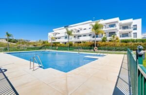 Descubre este luminoso y espacioso apartamento de dos dormitorios, idealmente ubicado en la planta baja de la exclusiva comunidad cerrada de El Lagar, en La Cala de Mijas.