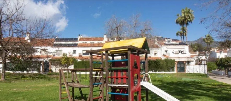 La urbanización cuenta con generosas zonas comunes que incluyen dos piscinas (una de agua salada), un jardín infantil y un pequeño campo de fútbol, todo rodeado de amplias áreas verdes que garantizan privacidad y tranquilidad. A solo 800 metros de la playa y a pocos minutos a pie del bulevar y zonas comerciales, esta casa pareada no solo es un hogar, sino un estilo de vida. Incluye plaza de aparcamiento exterior cubierta y está en buen estado, lista para ser habitada. ¡No pierdas la oportunidad de vivir en este rincón privilegiado de Marbella!