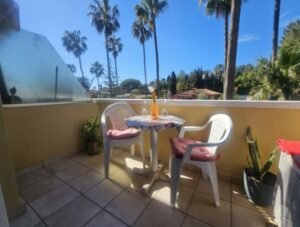 Encantador bajo en Artola Marbella. El apartamento consta de una habitación, un baño, cocina abierta, amplio salón dando lugar a una terraza con bonitas vistas. El apartamento se queda totalmente amueblado. La urbanización tiene piscina y bonitos jardines.