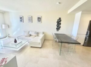 Totalmente amueblado con mobiliario de alta gama y diseño contemporáneo, este hogar ofrece un espacio amplio y luminoso. El salón-comedor de concepto abierto se conecta directamente con una gran terraza, desde donde se pueden contemplar impresionantes vistas al mar, ideal para relajarse o recibir invitados.