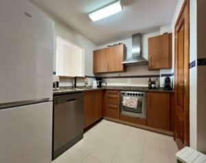 Descubre este espacioso apartamento de dos dormitorios en la tranquila Fase 1 de La Cala Hills, un lugar perfecto para disfrutar de un estilo de vida cómodo. Con una superficie construida de aproximadamente 100 m², este hogar ofrece un salón-comedor luminoso y bien distribuido, ideal para relajarse o recibir visitas. La cocina totalmente equipada cuenta con un práctico lavadero independiente, mientras que los dos dormitorios dobles son perfectos para descansar después de un día en la playa o en el campo de golf.