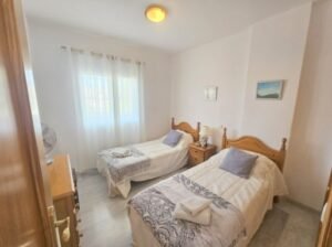 El salón-comedor es amplio y luminoso, ofreciendo un ambiente acogedor que se extiende hacia una terraza de aproximadamente diez m², donde podrás relajarte mientras disfrutas de fantásticas vistas al mar. Además, el edificio cuenta con amplias zonas de jardín y dos piscinas, perfectas para refrescarse en los días soleados.